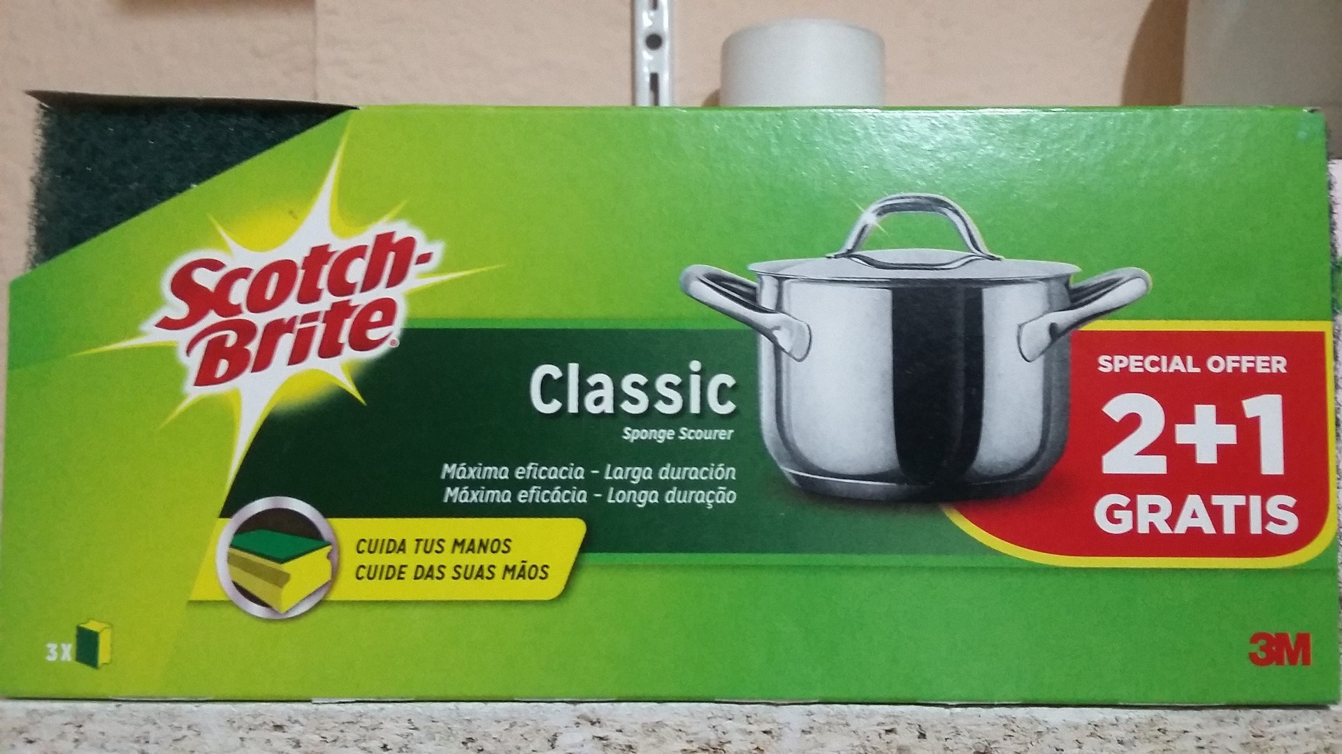 Desde siempre máxima eficacia y larga duración. Gracias a su original fibra verde Scoth-Brite - Ideal para eliminar la grasa y restos de alimento más incrustados en ollas y sartenes.